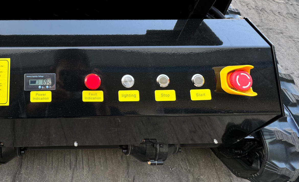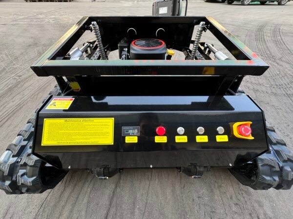 All our mowers feature emergency stop buttons on both the machine and remote controller, automatic engine shutdown when losing remote signal, blade brake systems, LED warning lights, and rollover protection design. Safety guards around all moving parts are standard on every model.