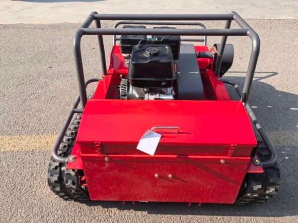 All our mowers feature emergency stop buttons on both the machine and remote controller, automatic engine shutdown when losing remote signal, blade brake systems, LED warning lights, and rollover protection design. Safety guards around all moving parts are standard on every model.