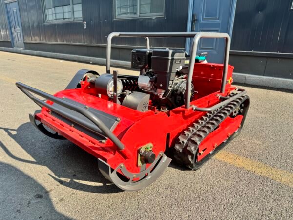 Our crawler mowers are designed for challenging terrains including steep slopes up to 50°, uneven ground, muddy conditions, and rough surfaces. The rubber track system provides superior traction on grass, soil, gravel, and even wet surfaces where wheeled mowers would struggle.